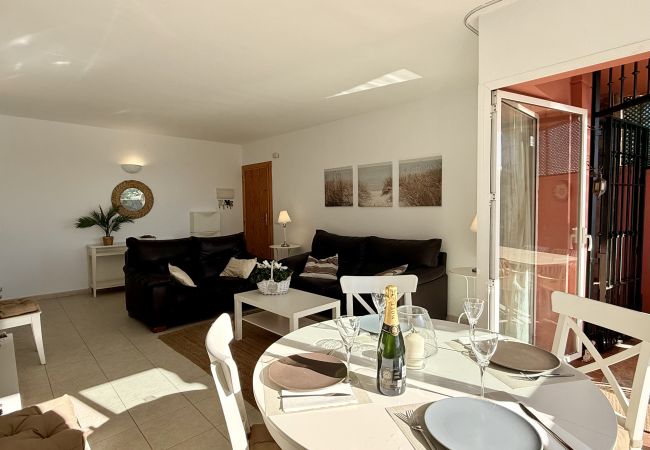 La vivienda dispone de tres dormitorios, espacios comunes generosos y una cuidada decoración pensada para el descanso. Desde el apartamento se disfrutan agradables vistas al mar y a las zonas ajardinadas, creando un ambiente sereno durante toda la estancia.