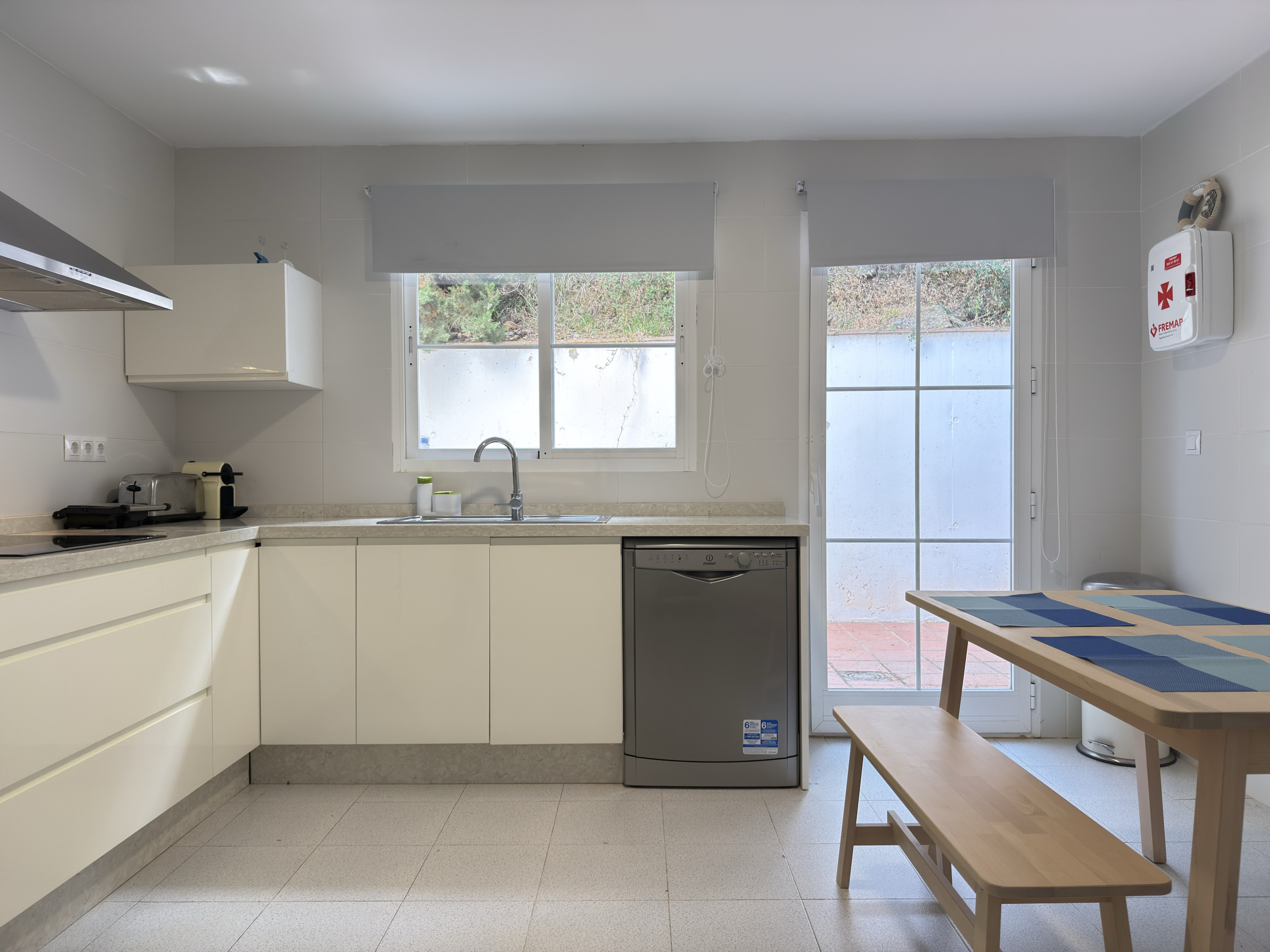 La maison est répartie sur deux niveaux et peut accueillir jusqu’à 6 personnes. À l’étage, vous trouverez 3 chambres et 2 salles de bains complètes, offrant un espace nuit confortable et fonctionnel. Le rez-de-chaussée comprend une grande cuisine entièrement équipée, un salon-salle à manger lumineux et un accès à une grande terrasse, parfaite pour profiter du climat méditerranéen toute l’année.
